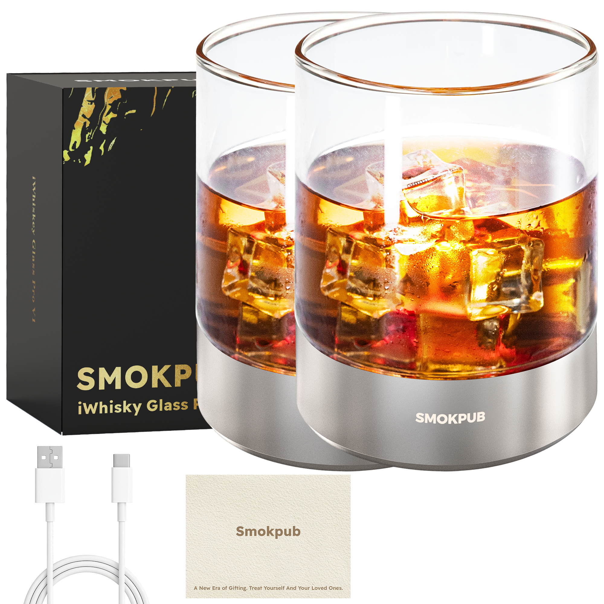 Smokpub Electric Cooling Glass Set (2) – Smart Drinkware with CoolSpin Tech, Ambient Lights, and Whiskey Gift Set