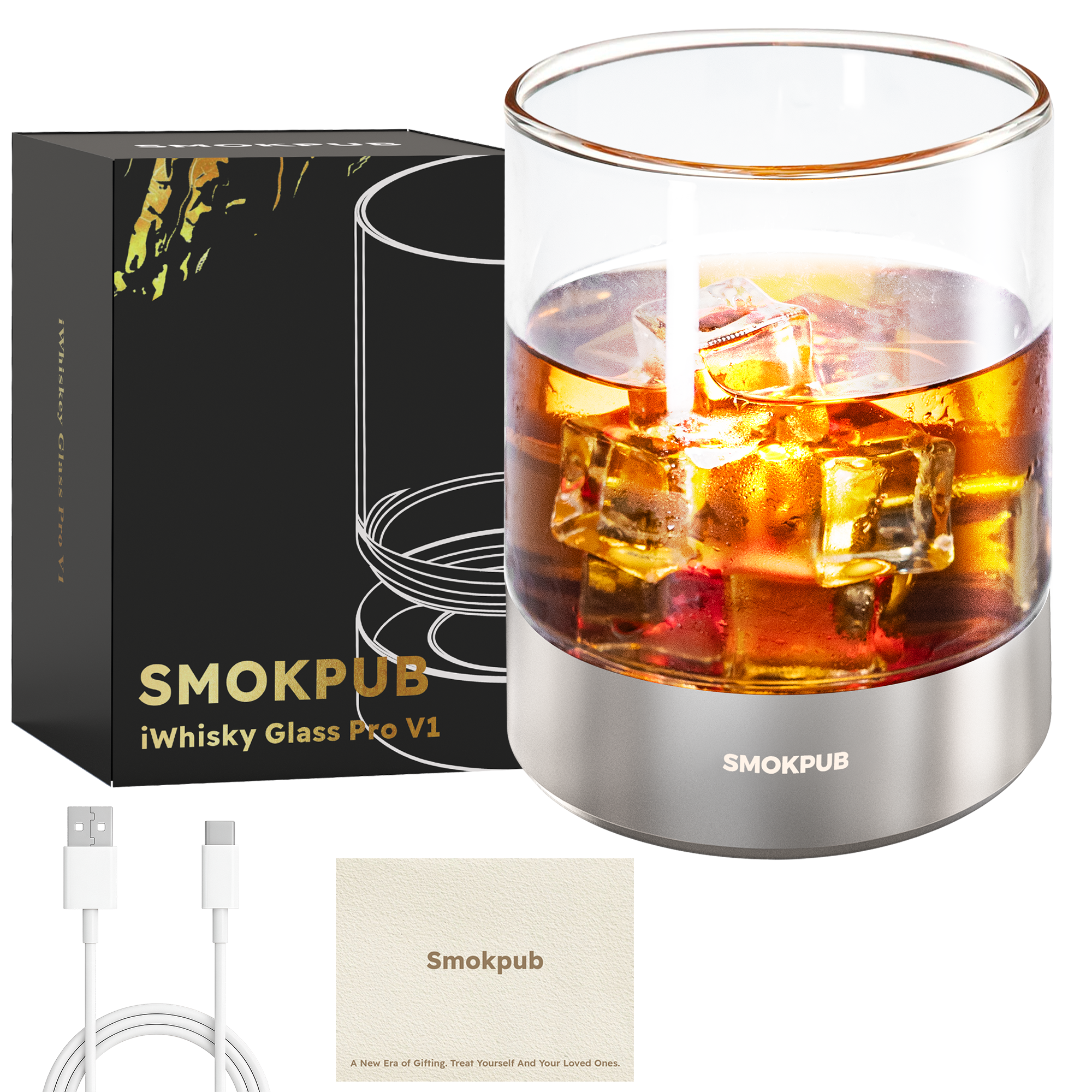 Smokpub Electric Cooling Glass – Smart Whiskey Glass with Ambient Lighting & Rapid Cooling – Perfect Gift for Whiskey Lovers