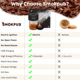Easy to store and portable, the Smokpub electric cocktail and whiskey smoker is perfect for any occasion—whether it's a convenience store, bar, party, or outdoor camping. Show off your skills and impress guests, even while traveling. Get Smokpub now to prepare for the holiday season and surprise your loved ones with the perfect Christmas gift.